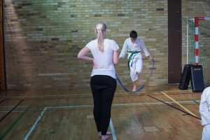 Zu meistern waren unter anderem Seilspringen auf Zeit mit dem Karategürtel, also dem Obi, Zielwerfen, Koordinationsleiter, Hindernislauf und Minigolf…